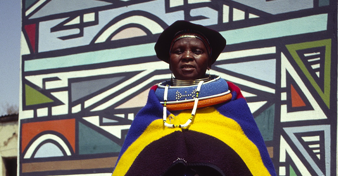 De Ndebele staan bekend om hun in heldere kleuren geverfde huizen, versierd met geometrische patronen. Dat beschilderen wordt alleen door de vrouwen gedaan. Moeders dragen hun kennis over op hun dochters. Vroeger gebruikte men witte-, gele-, grijze- en rode leem en houtskool. Tegenwoordig wordt er vaak acrylverf gebruikt. De kleuren daarvan worden vaak mooier gevonden. Bovendien blijft die verf beter zitten. Zo kleurrijk als hun huizen zijn, is ook de kleding die door de Ndebele-vrouwen wordt gedragen. Getrouwde vrouwen dragen zware bronzen ringen om hun armen, benen en nek, vaak omgeven door kralen. De Ndebele leven voornamelijk in het noordoostelijk deel van Mpumalanga bij Tshwane (Pretoria) en in de regio van Middelburg in Gauteng.